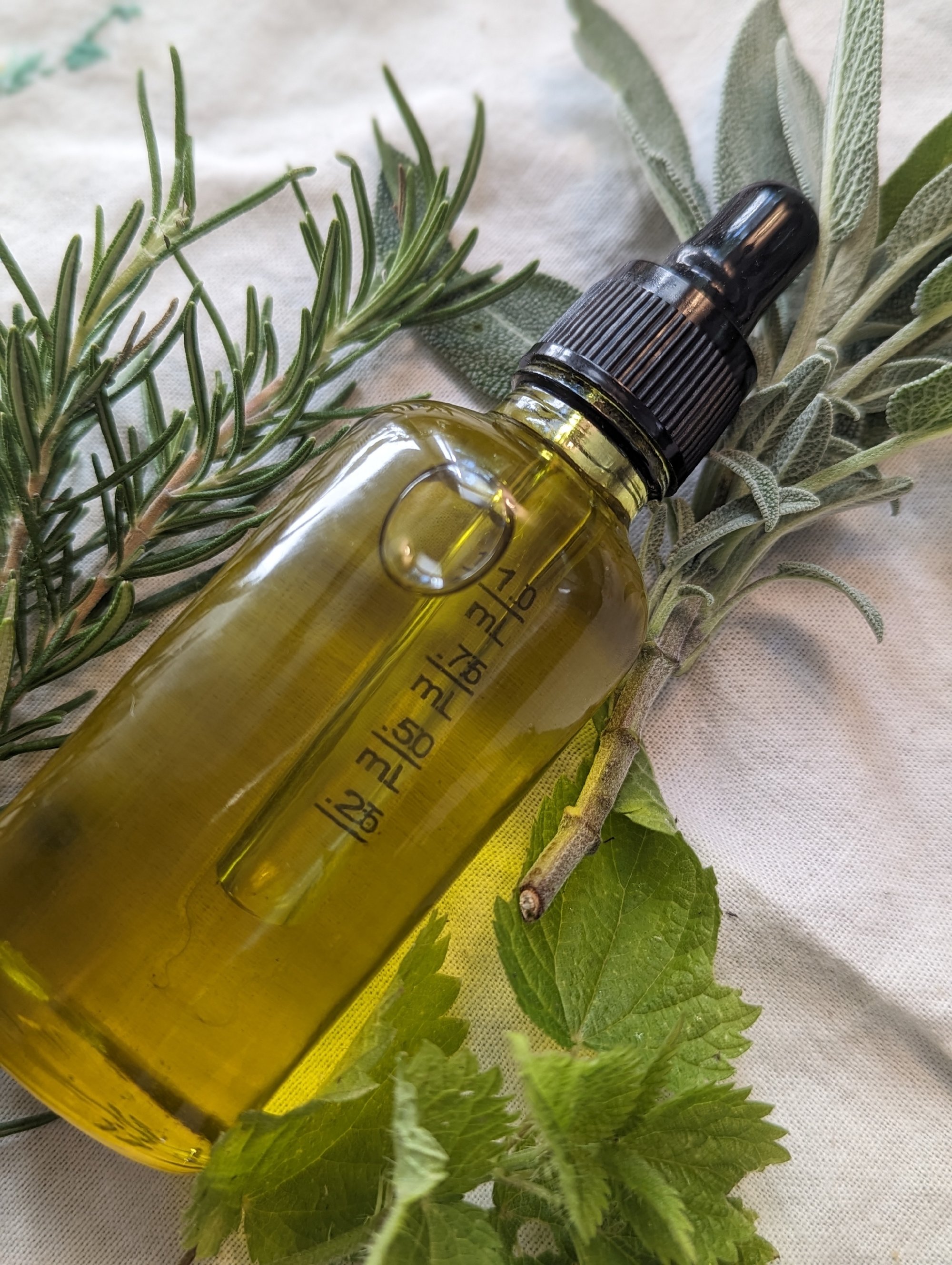 A potent blend of homegrown and foraged botanicals of Rosemary, Sage, foraged Horsetail and Nettle in nourishing oils. Apply a few drops to the scalp and massage in. Can be used as an overnight mask and shampooed out the next day with my shampoo bars.