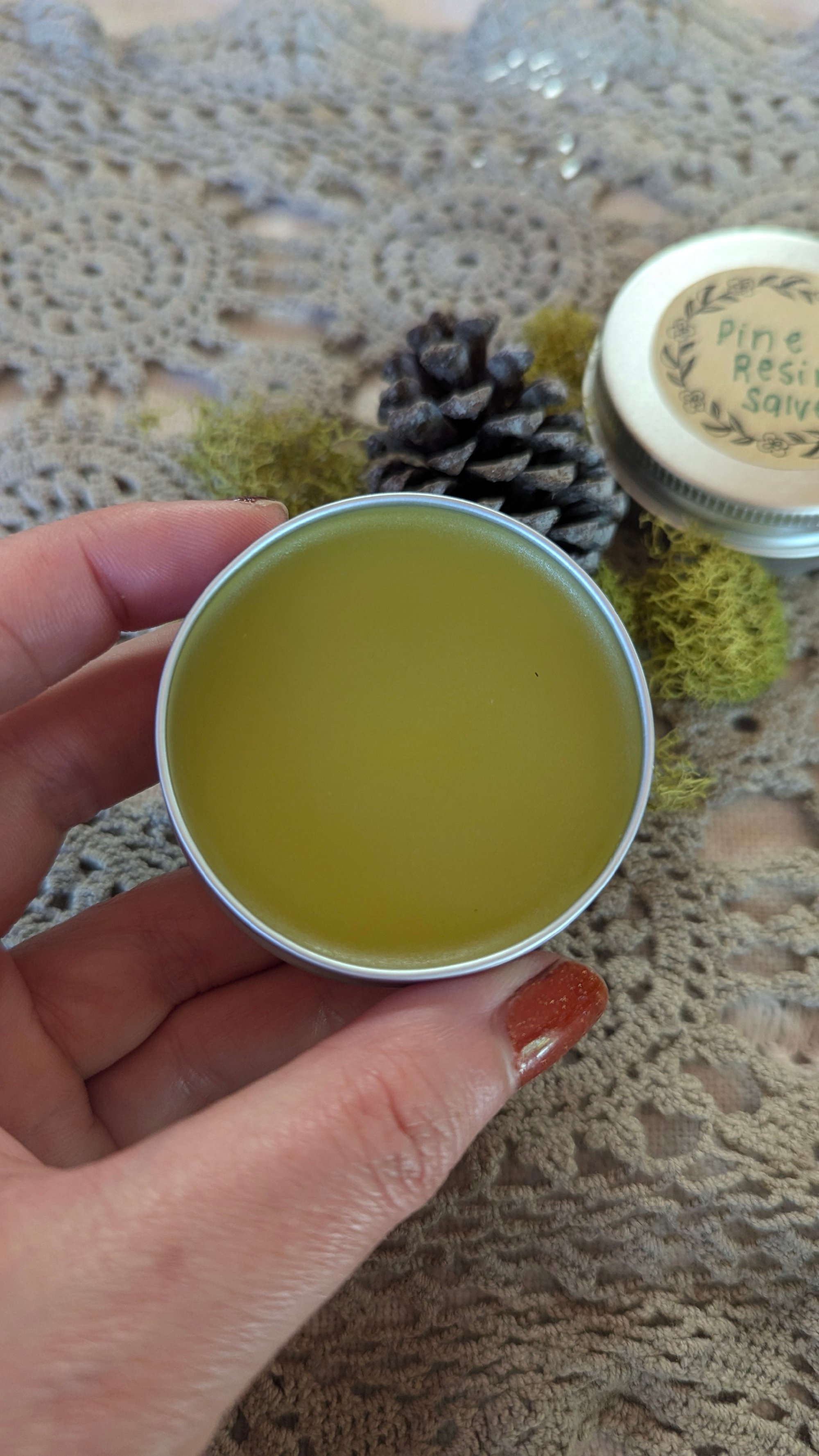 A natural antiseptic and wound healing salve made with Pine Resin found on the forest floor and a Yarrow oil infusion. Pine Resin is the tree's natural way of healing itself from infections and damage and it works the same for humans! You can even apply it to sore muscles and joints. Comes in a 1 oz tin