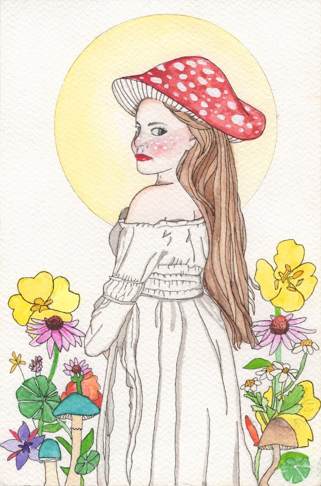 Mushroom Queen - 6x9 Watercolor and Micron pen